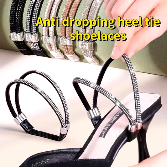 • Rhinestone High Heels Shoes Band Anti-Loose for Women Shoelaces Invisible Anti-Drop Heel Straps Belt Drill Elastic Fixed Belts